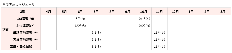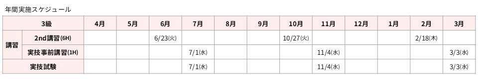 3級 講習 6月23日(火) / 事前講習・実技試験 7月1日(水)