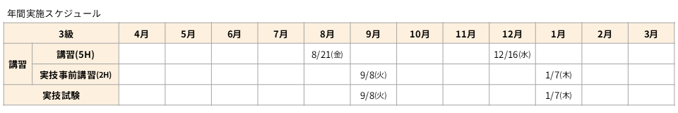 3級【WEB】 講習 8月21日(金) / 事前講習・実技試験 9月8日(火)