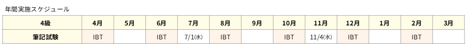 4級 試験日:2026年7月1日(水) 13:30~14:10