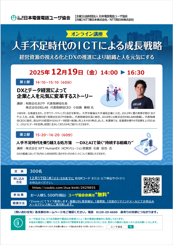 【第2部】人⼿不⾜時代を乗り越える処⽅箋―DXとAIで築く“持続する組織⼒” 15:20~16:20 〔60分〕