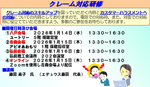 ユーザ協会だより「ユー協Aomori12月号」クレーム対応研修開催のご案内 他