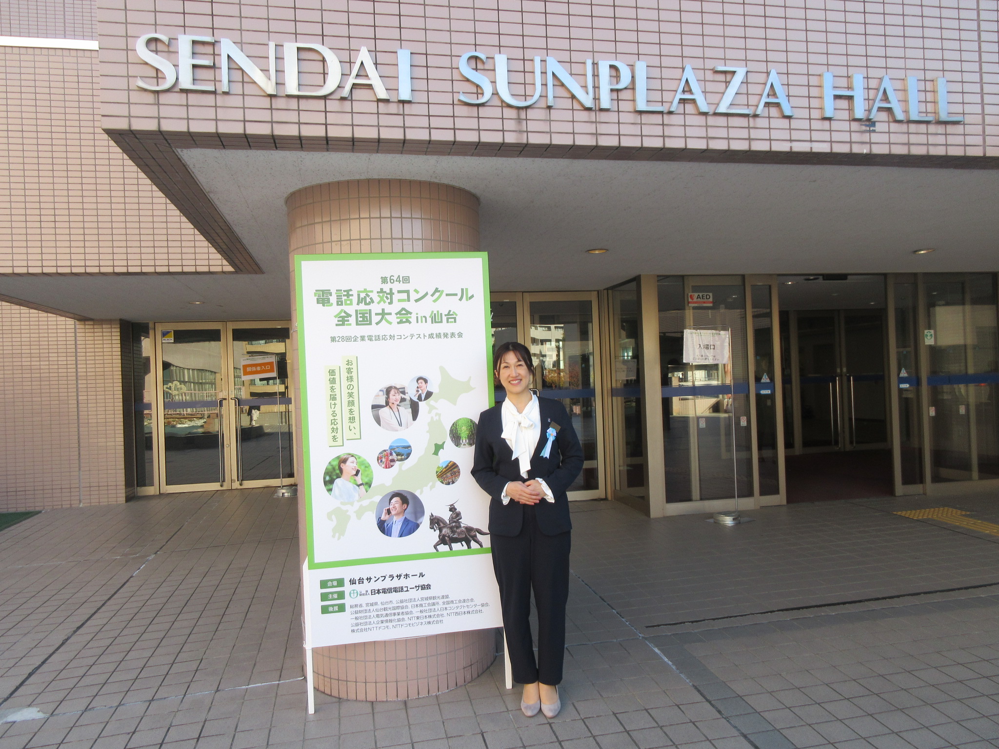 2025年度電話応対コンクール全国大会が11月14日に宮城県仙台サンプラザホールにて行われ、青森県代表の奥山めぐみさん(損害保険ジャパン株式会社八戸保険金サービス課)が、参加人数56名の電話応対の猛者たちと競い、素晴らしい電話応対を披露されました!惜しくも入賞は逃したものの、応援団や会場からは惜しみない拍手と健闘を称える声が相次ぎました。みなさん、沢山の応援をありがとうございました!