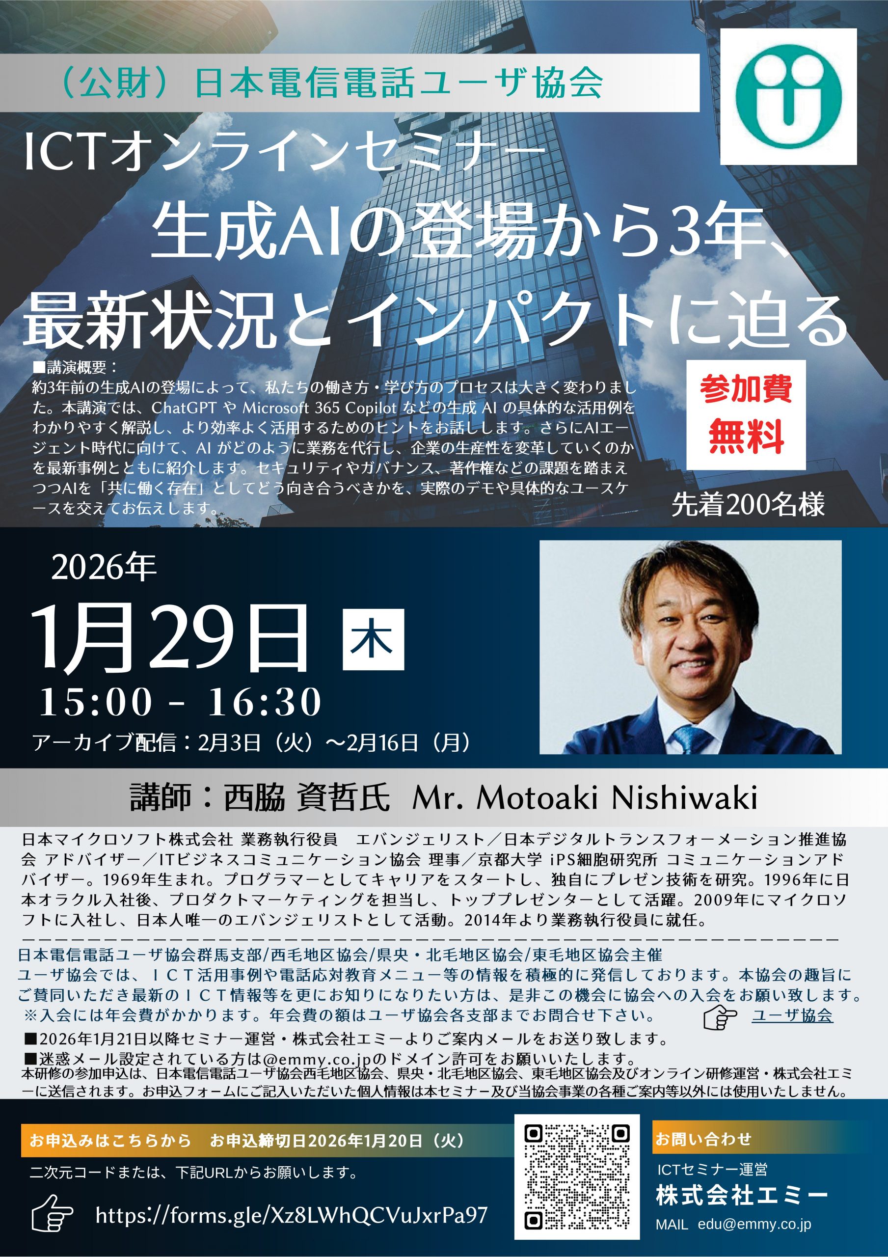 オンラインセミナー 生成AIの登場から3年、最新状況とインパクトに迫る のご案内<参加費無料・先着200名>1月29日(木)開催