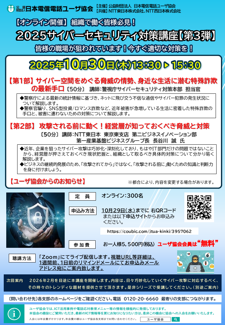 講座名:2025サイバーセキュリティ対策講座【第3弾】