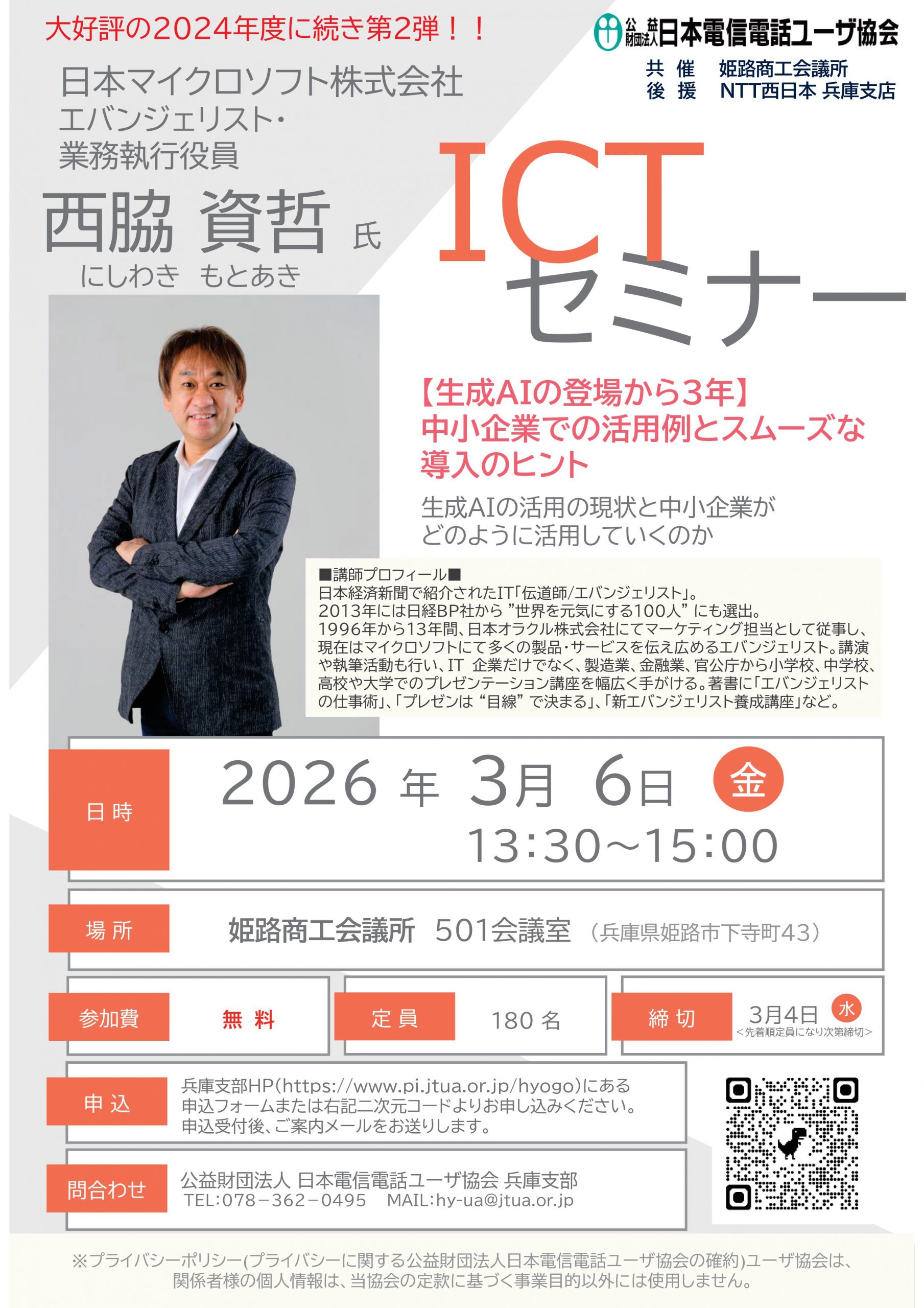 姫路商工会議所様との共催でICTセミナーを以下のとおり開催します。