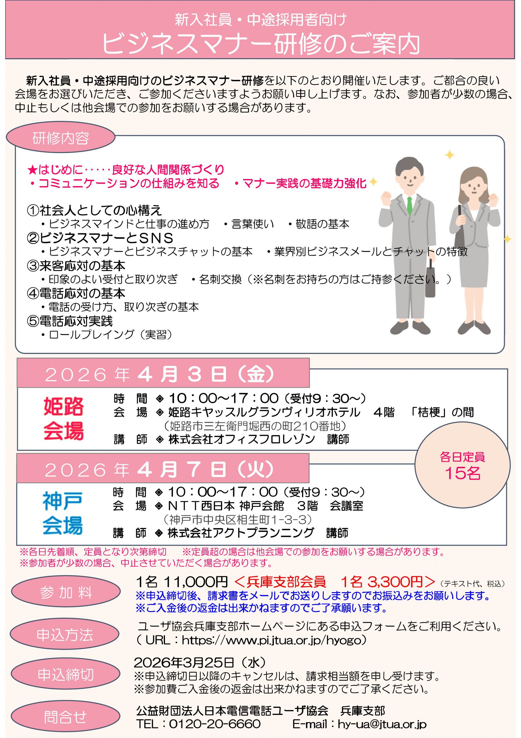 参 加 料 :1名 11,000円 <兵庫支部会員 1名 3,300円> (テキスト代・税込)