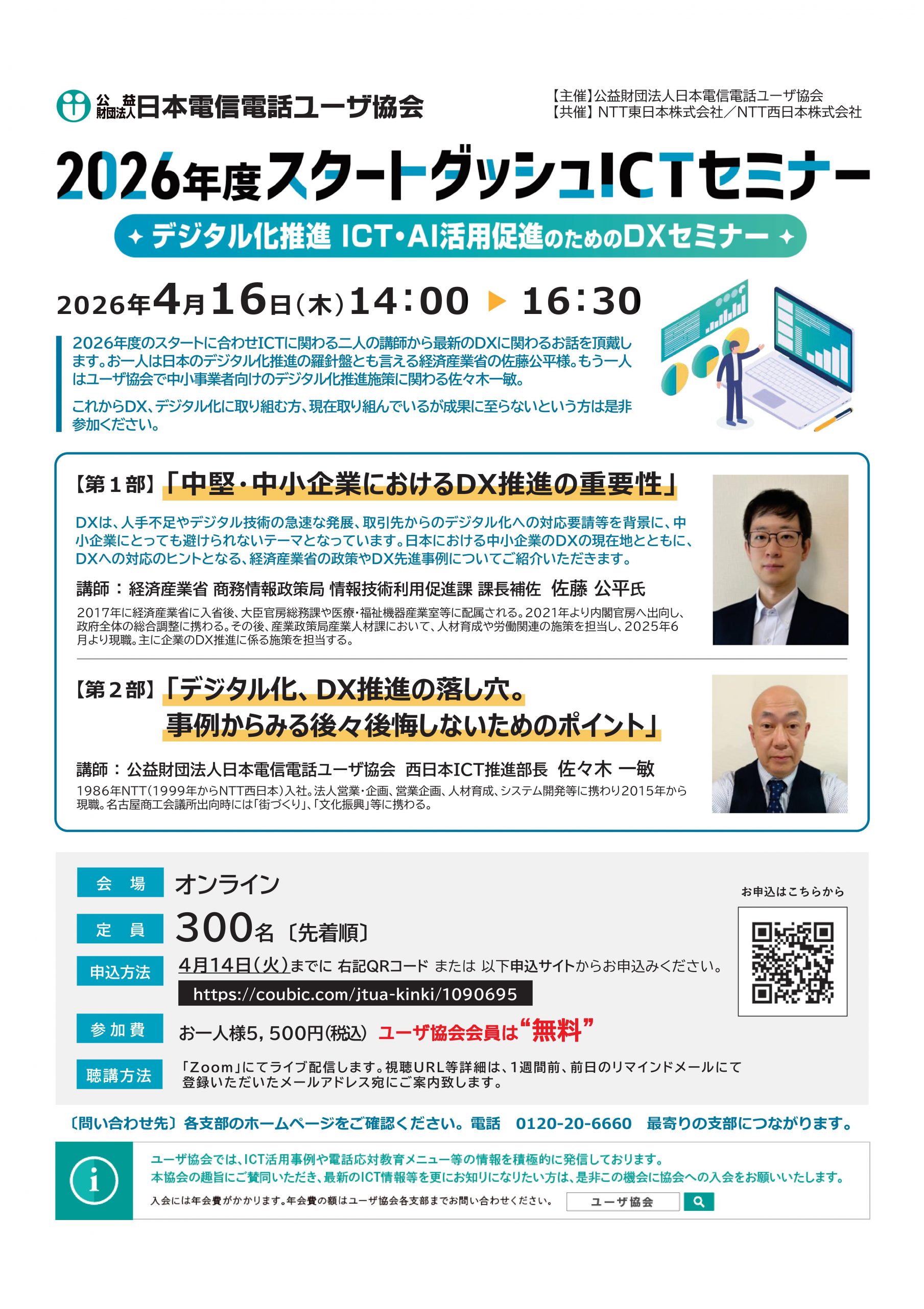 【オンラインセミナー】2026年度スタートダッシュICTセミナー『デジタル化推進 ICT・AI活用促進のためのDXセミナー』