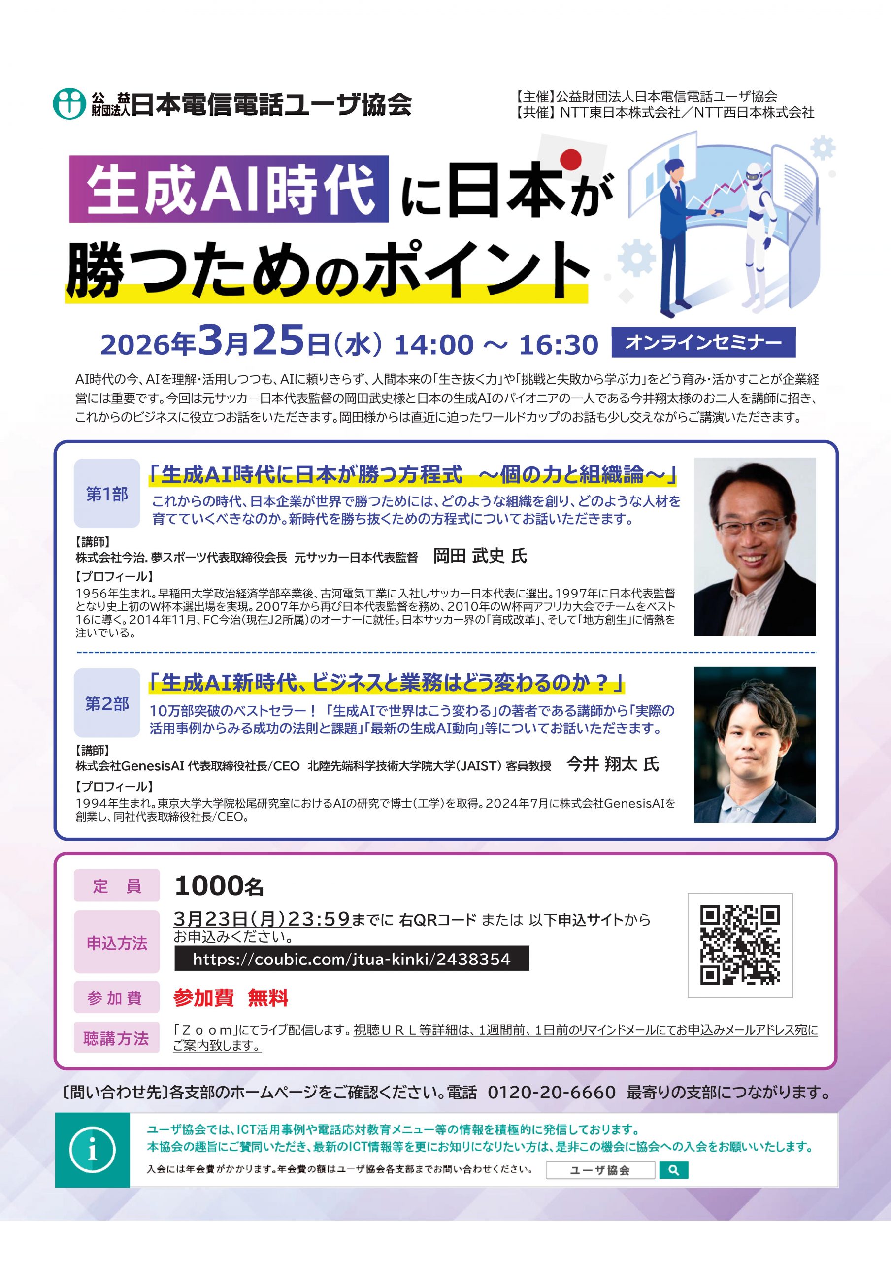【オンラインセミナー】岡田武史氏「生成AI時代に日本が勝つ方程式 ~個の力と組織論~」