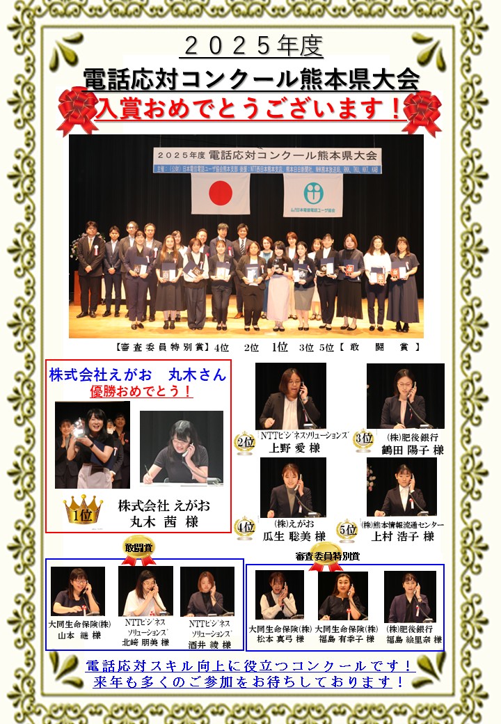 ▼2024年度「電話応対コンクール熊本県大会」入賞者