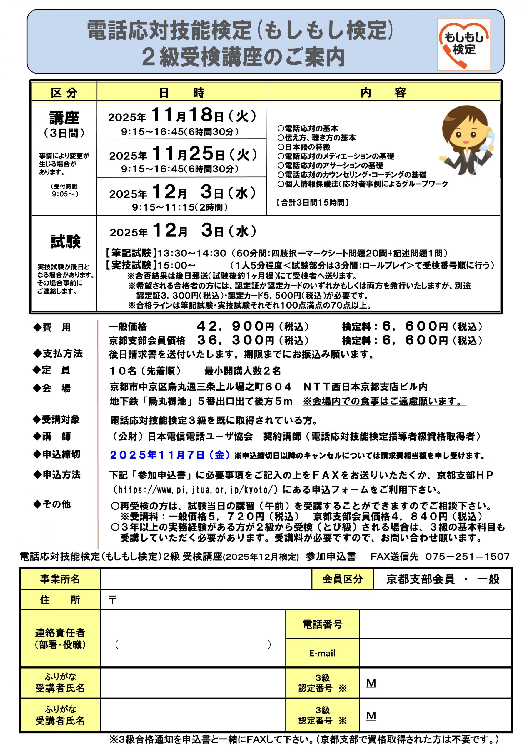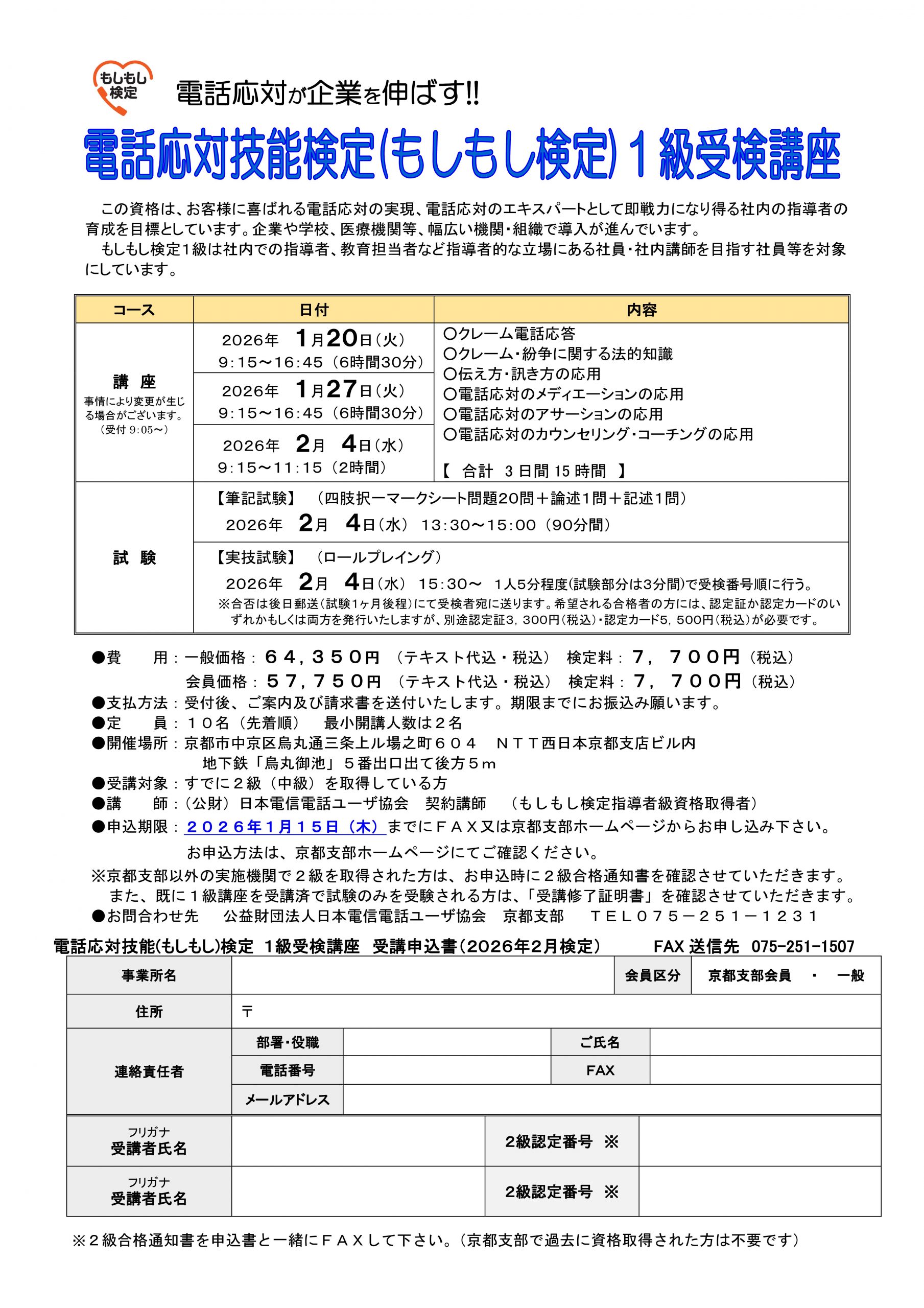 京都支部独自問題による「電話応対診断」を実施いたします!