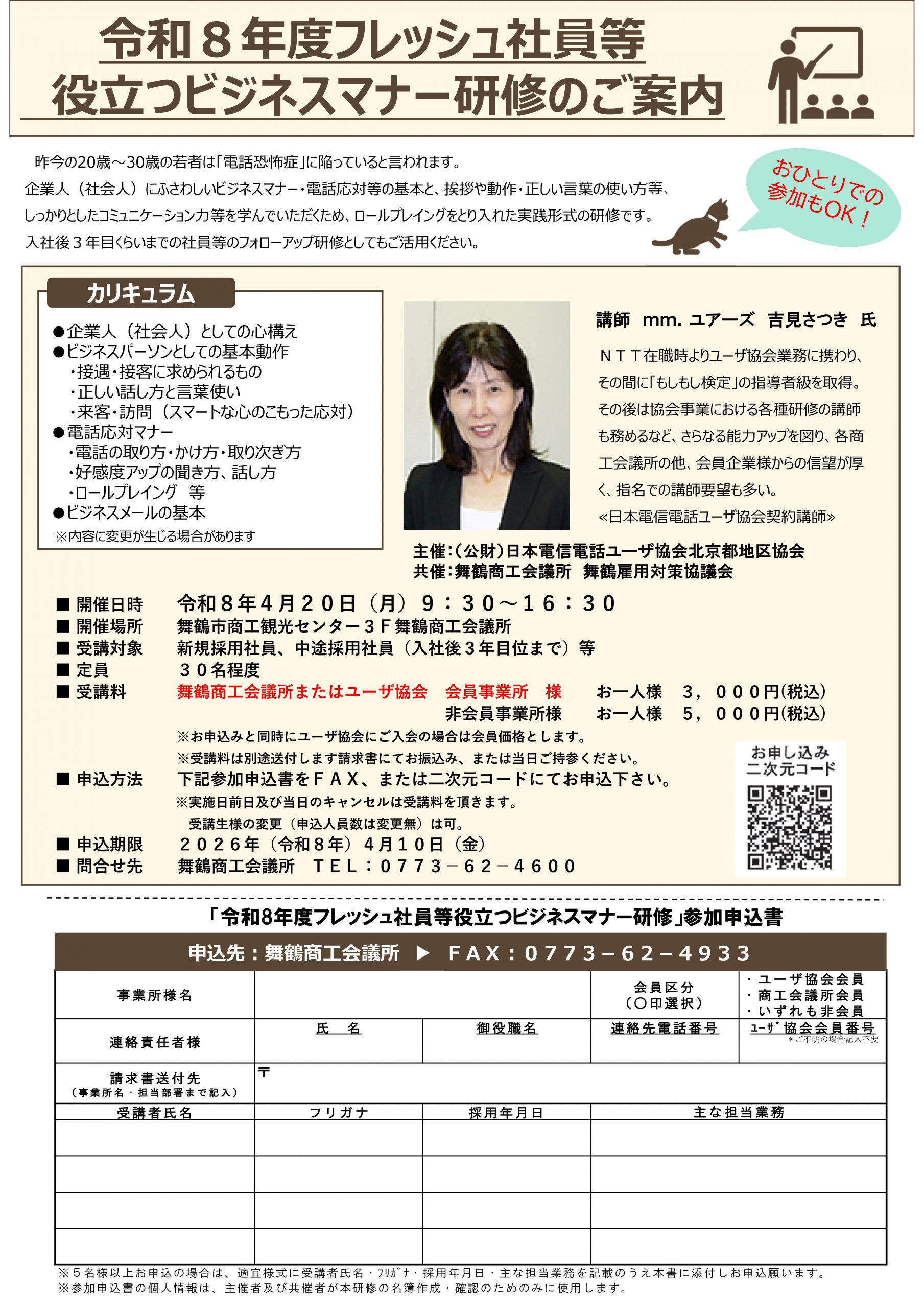 ※受付終了4月3日開催 令和7年度フレッシュ社員等役立つビジネスマナー研修<京都会場>のご案内
