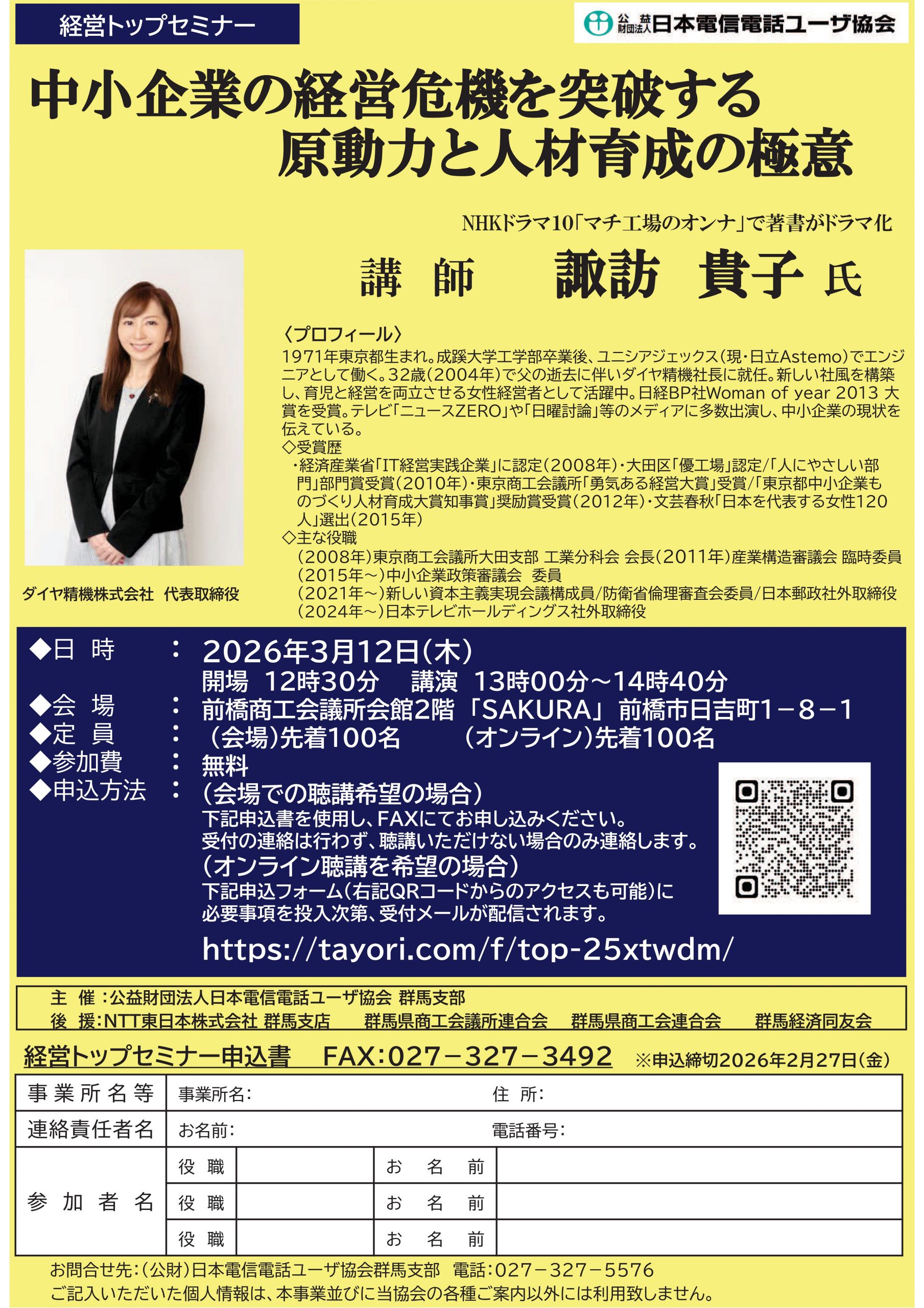 定   員 :300名 ※先着順、定員になり次第締切