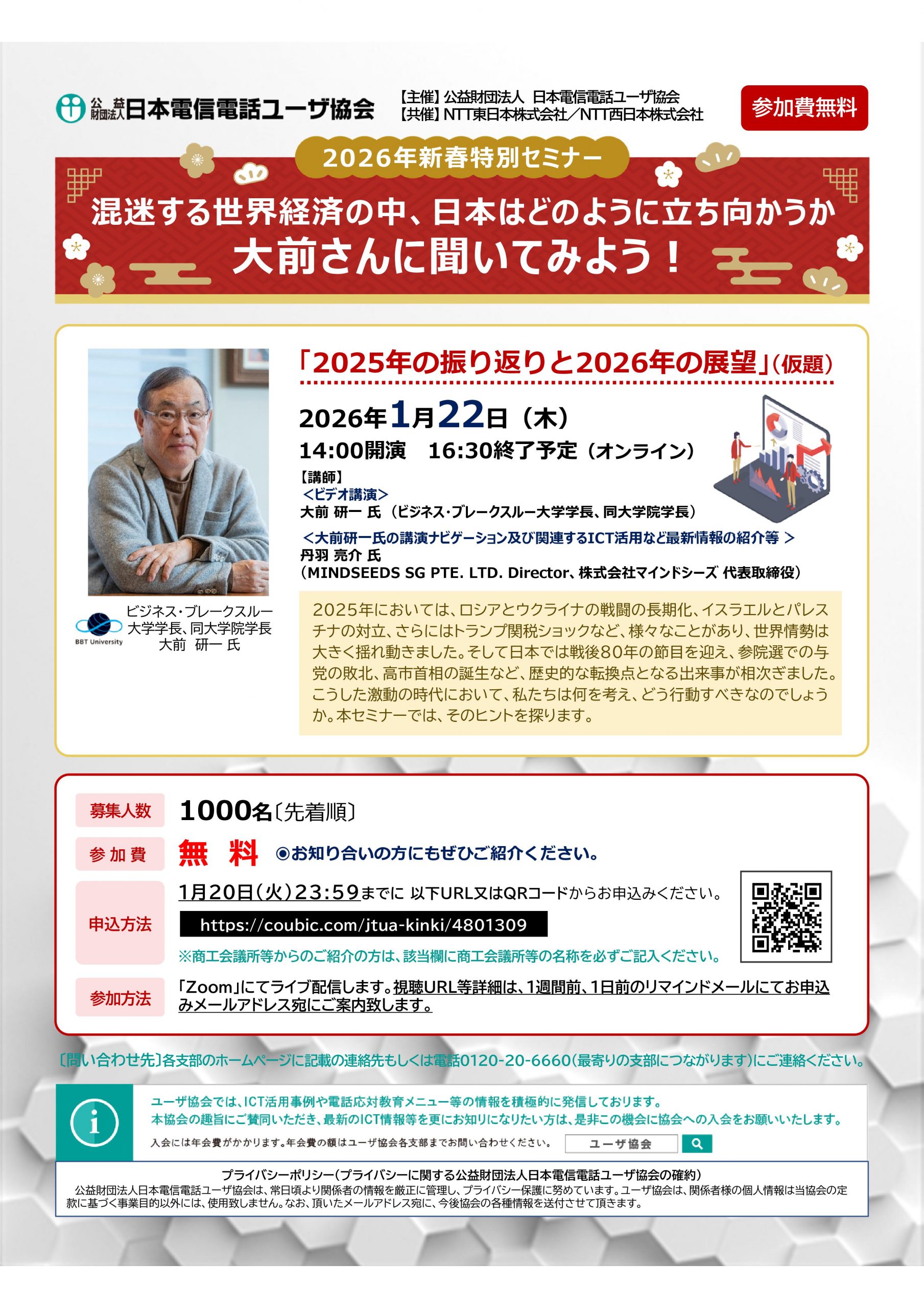 主 催:公益財団法人 日本電信電話ユーザ協会