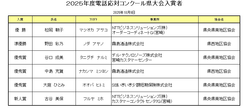2025年度 電話応対コンクール宮崎県大会が 10月9日(木)に開催されました。