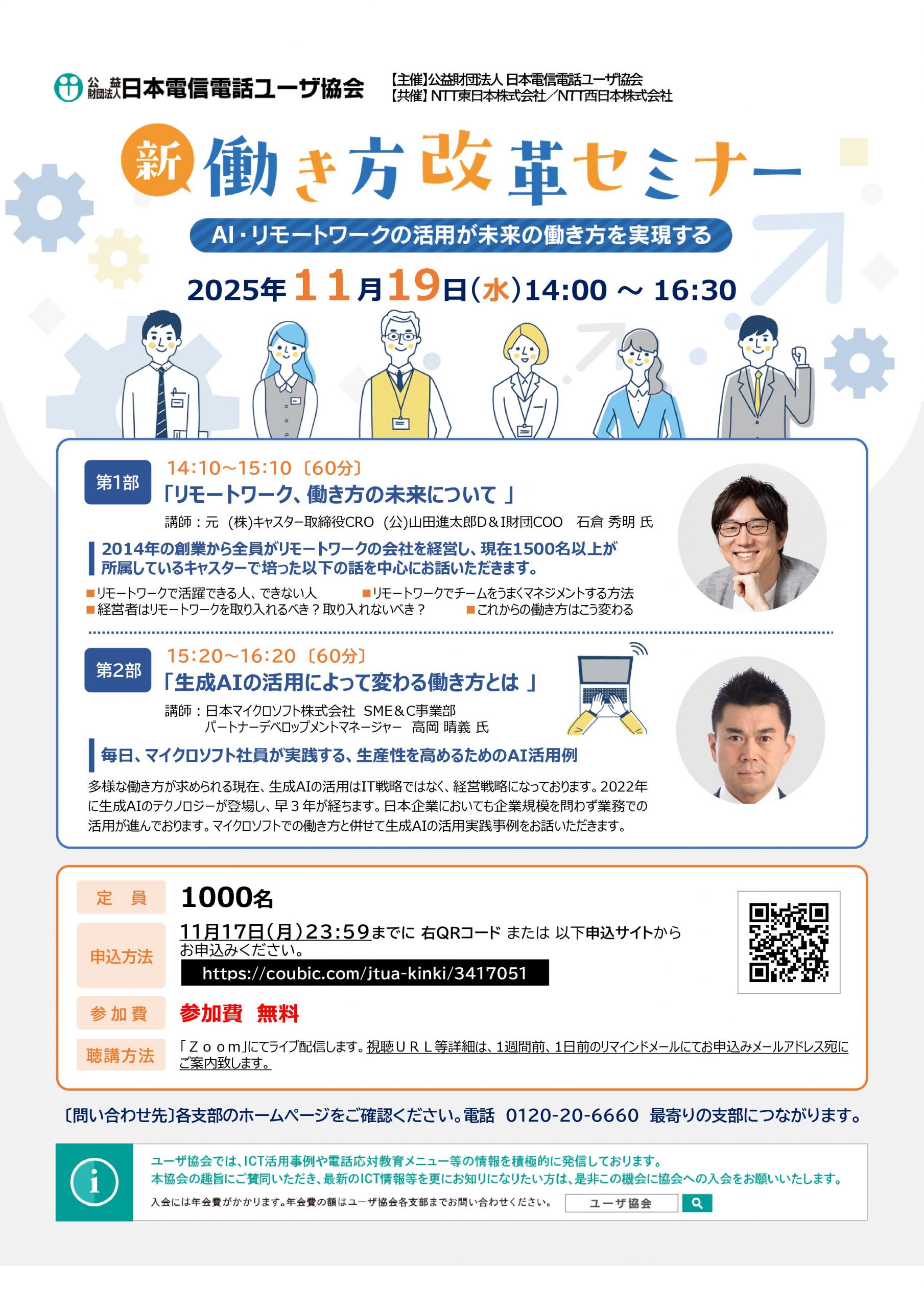 オンライン開催11月19日開催【受付中】   (新)働き方改革セミナー