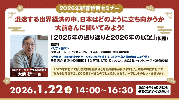 講師:大前 研一氏(ビデオ講演)、丹羽 亮介氏(㈱マインドシーズSG代表)