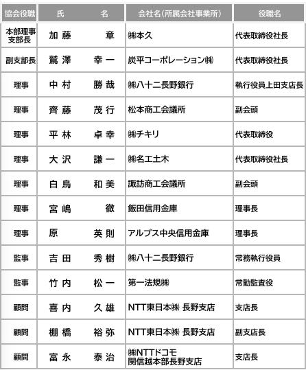 | 上伊那 | 原 英 則 | (アルプス中央信用金庫 理事長) |