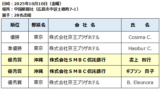 去る10月10日に「第30回英語電話応対コンクール」が中国新聞社(広島市)で開催されました。