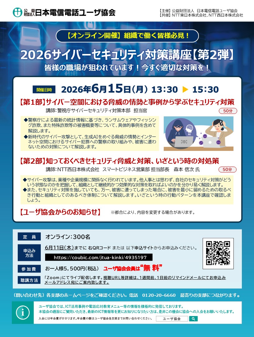 主 催:公益財団法人日本電信電話ユーザ協会 近畿事業推進部(6支部合同)