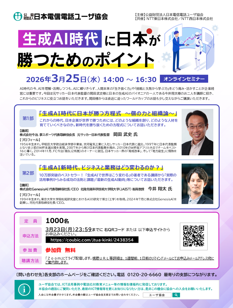 【受付中】3月25日開催 オンラインセミナー生成AI時代に日本が勝つためのポイント