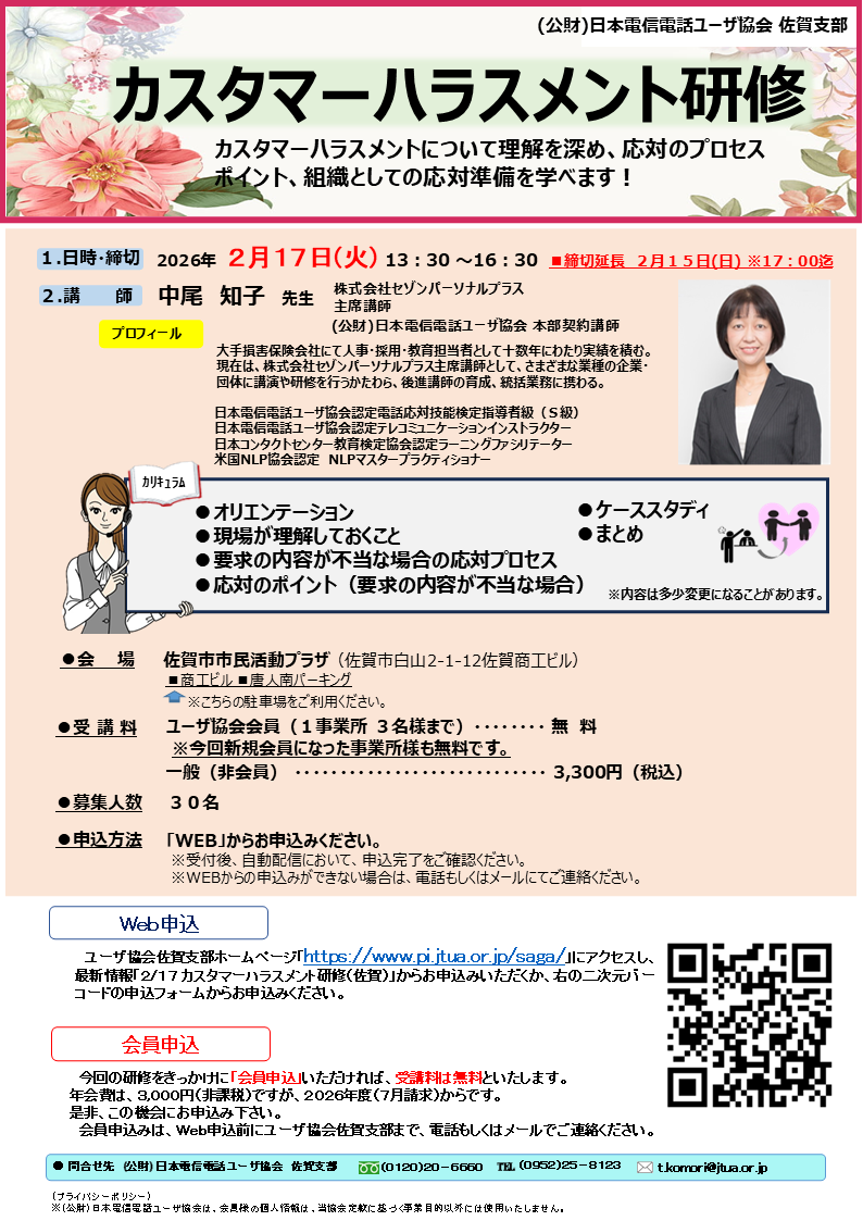 【受付終了】2月17日 ※佐賀初開催研修!「カスタマーハラスメント研修(佐賀)」