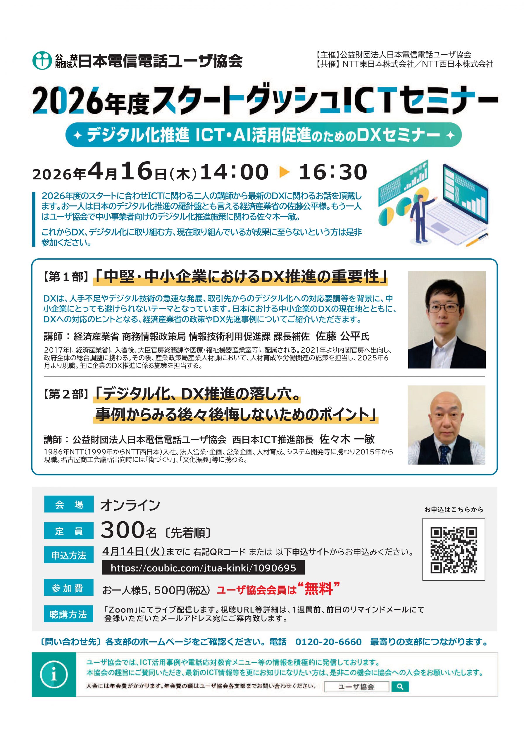 主 催:公益財団法人日本電信電話ユーザ協会 近畿事業推進部(6支部合同)