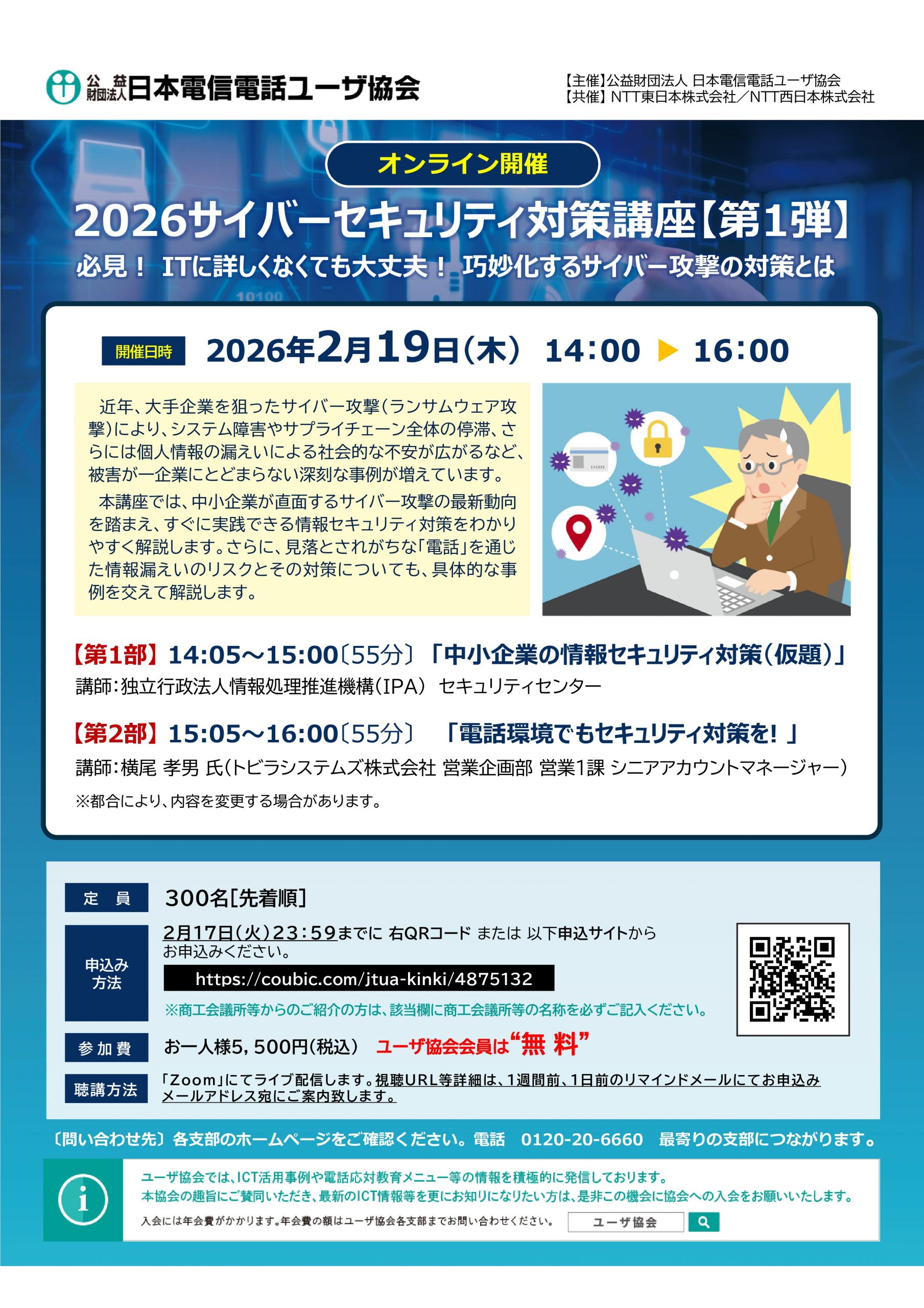 申込受付中!【2月19日開催】<オンライン講座>2026サイバーセキュリティ対策講座【第1弾】~必見! ITに詳しくなくても大丈夫! 巧妙化するサイバー攻撃の対策とは ~ のご案内