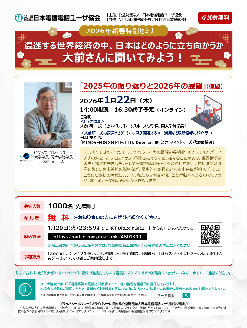 今年度も日本電信電話ユーザ協会 富山支部主催によるICT・経営セミナーを開催します。