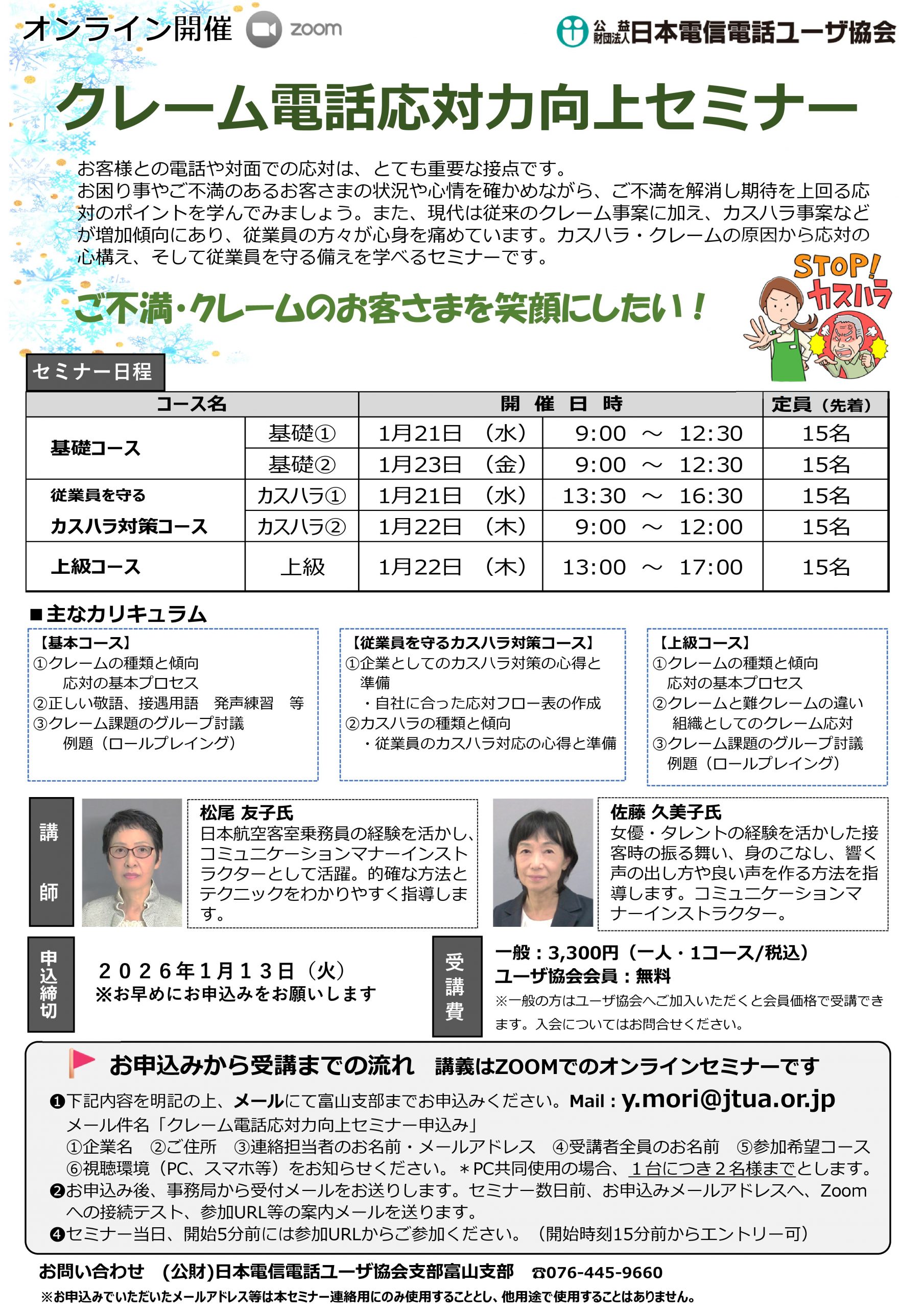 メール件名:「クレーム電話応対力向上セミナー2025申込み」