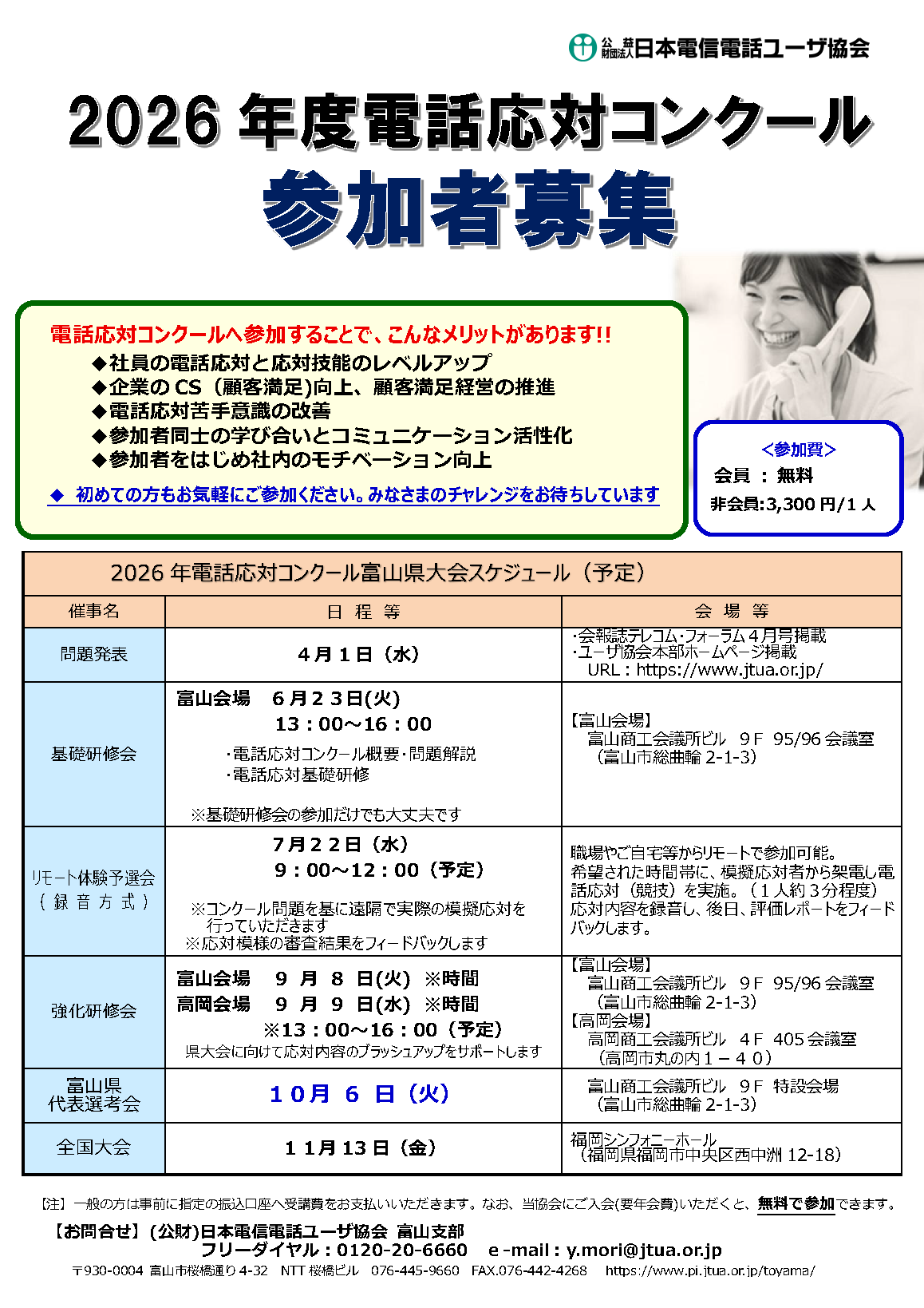 電話応対は企業にとってお客様との⼤切な接点の1つであり、信頼関係の構築とお客さま満足に繋がる重要な要素です。2025年度『電話応対コンクール富山県大会』は本年で第50回を迎えます。