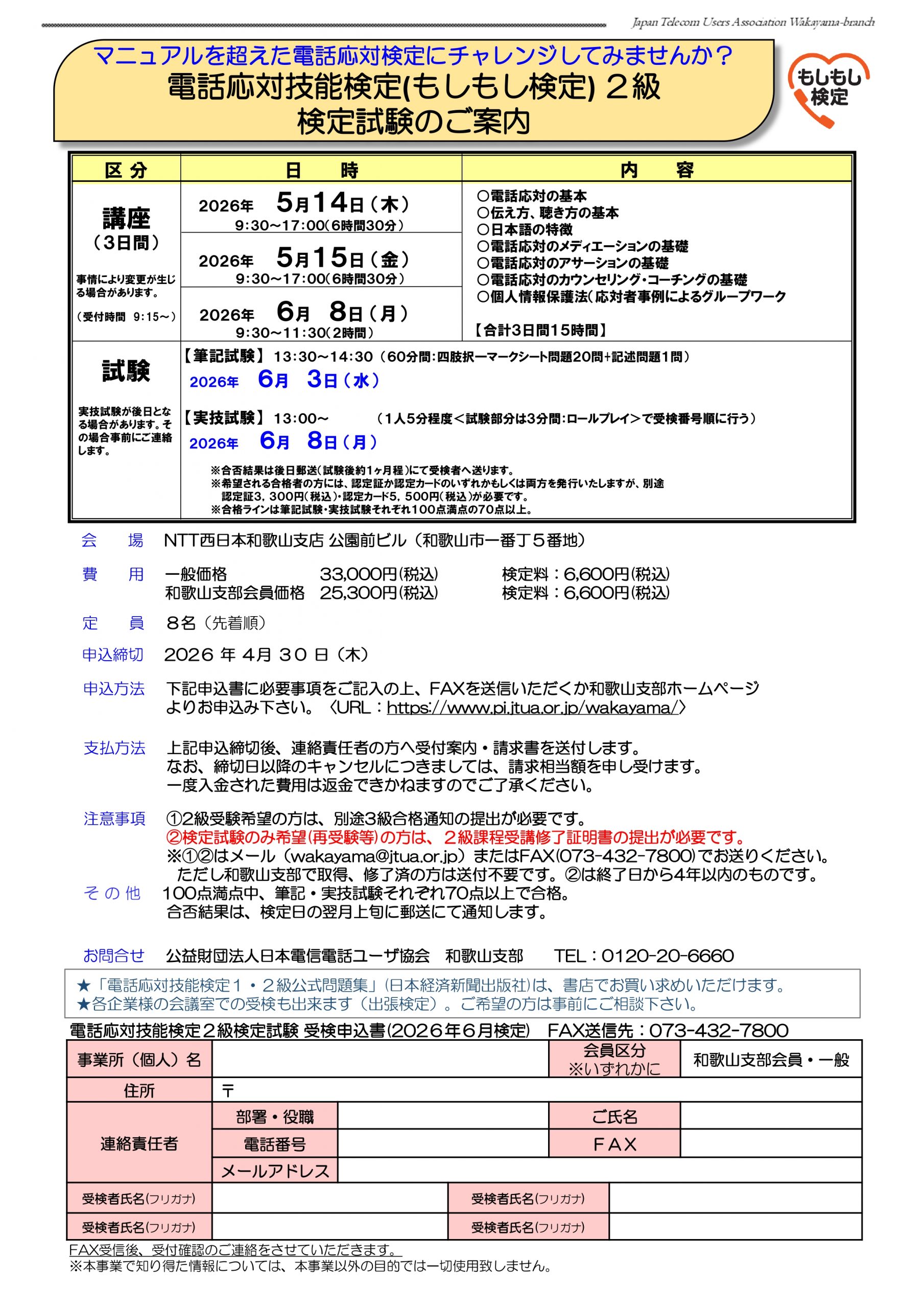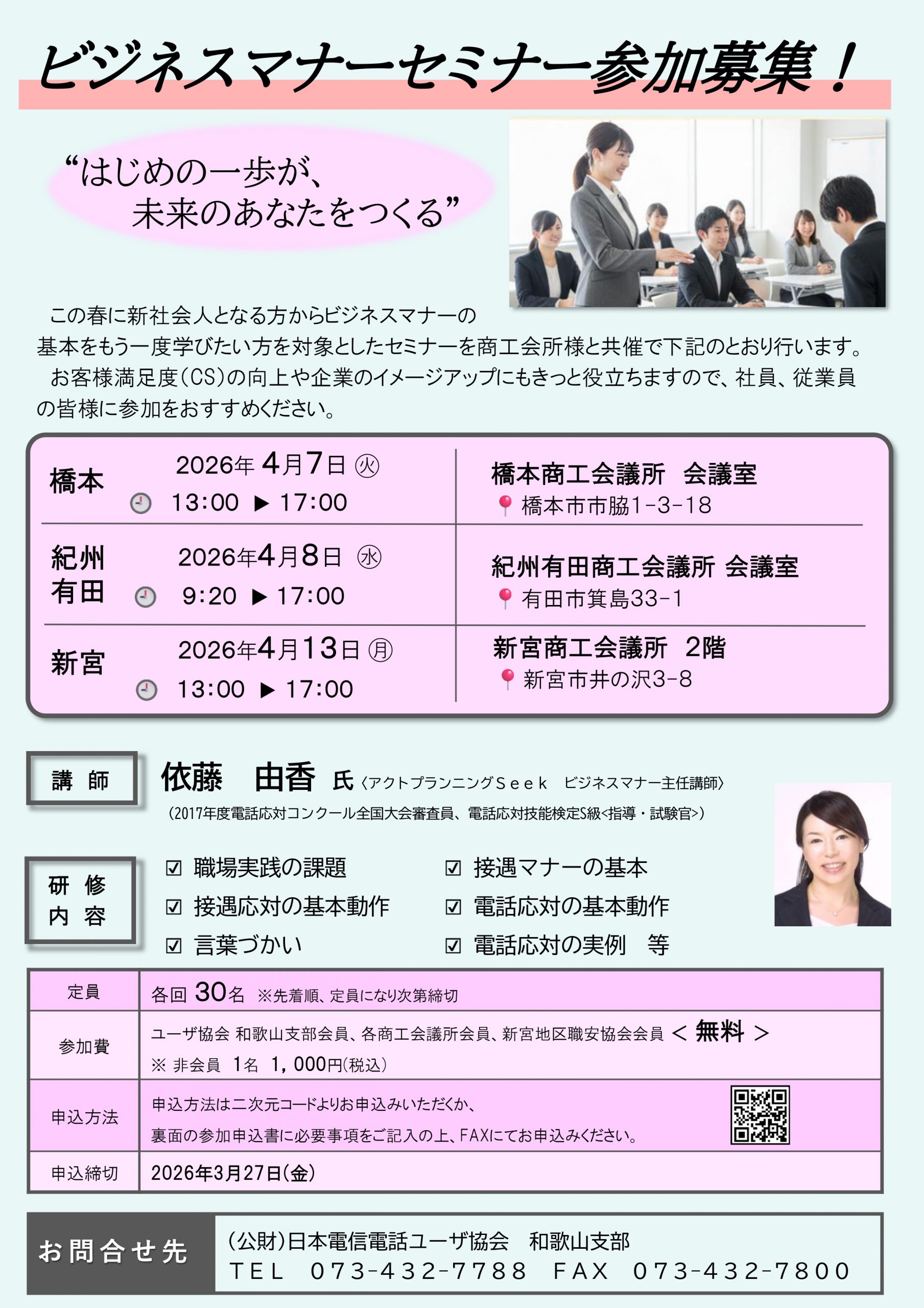 ※和歌山市内(5月14日予定)及び田辺市内(6月11日予定)につきましては、応対力の強化をメインとした内容で行う予定です。次号でご案内いたします。