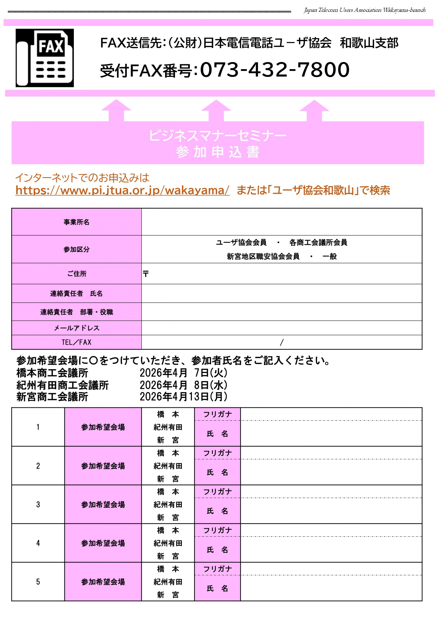会 場 :橋本商工会議所(橋本市市脇1-3-18)MAP