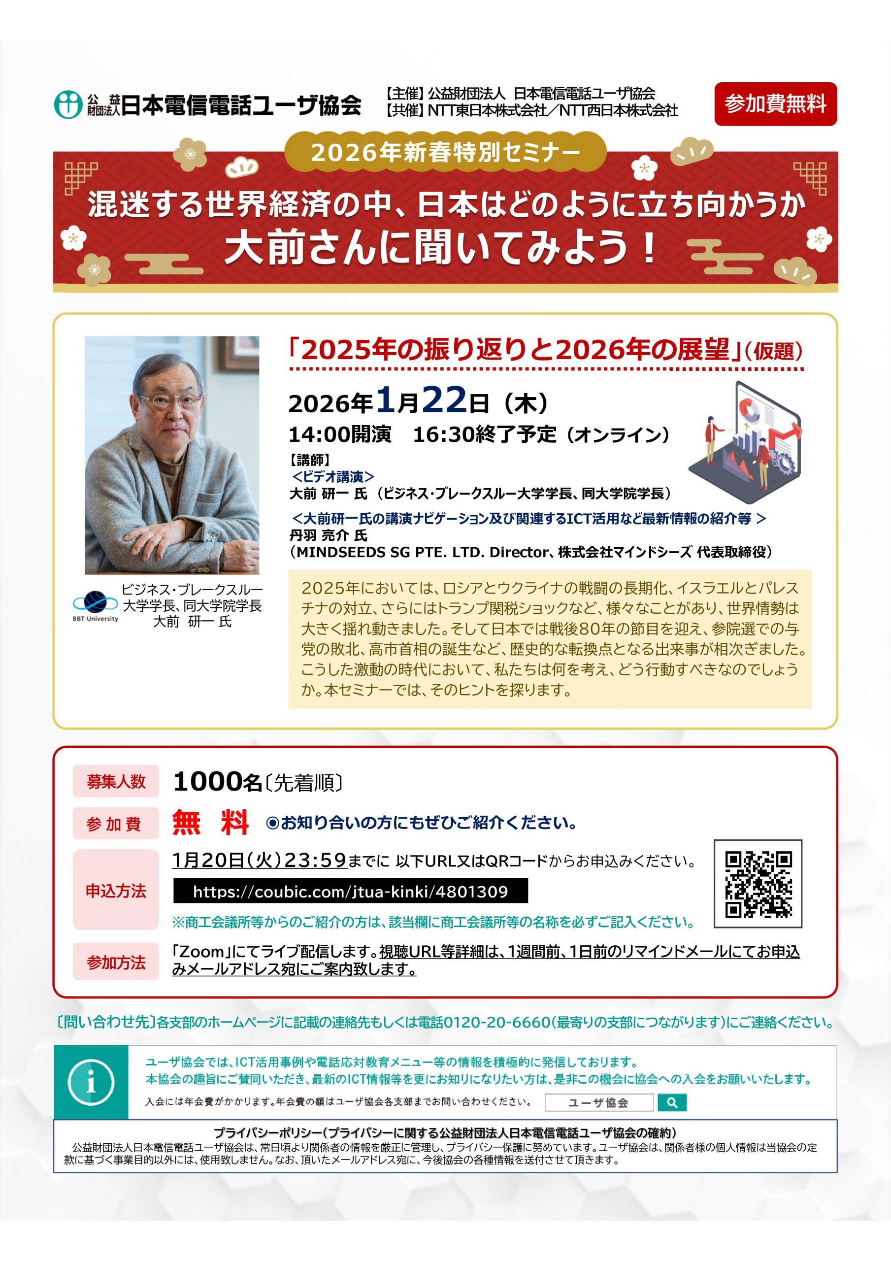 【日 時】 2026年1月22日(木) 14:00~16:30