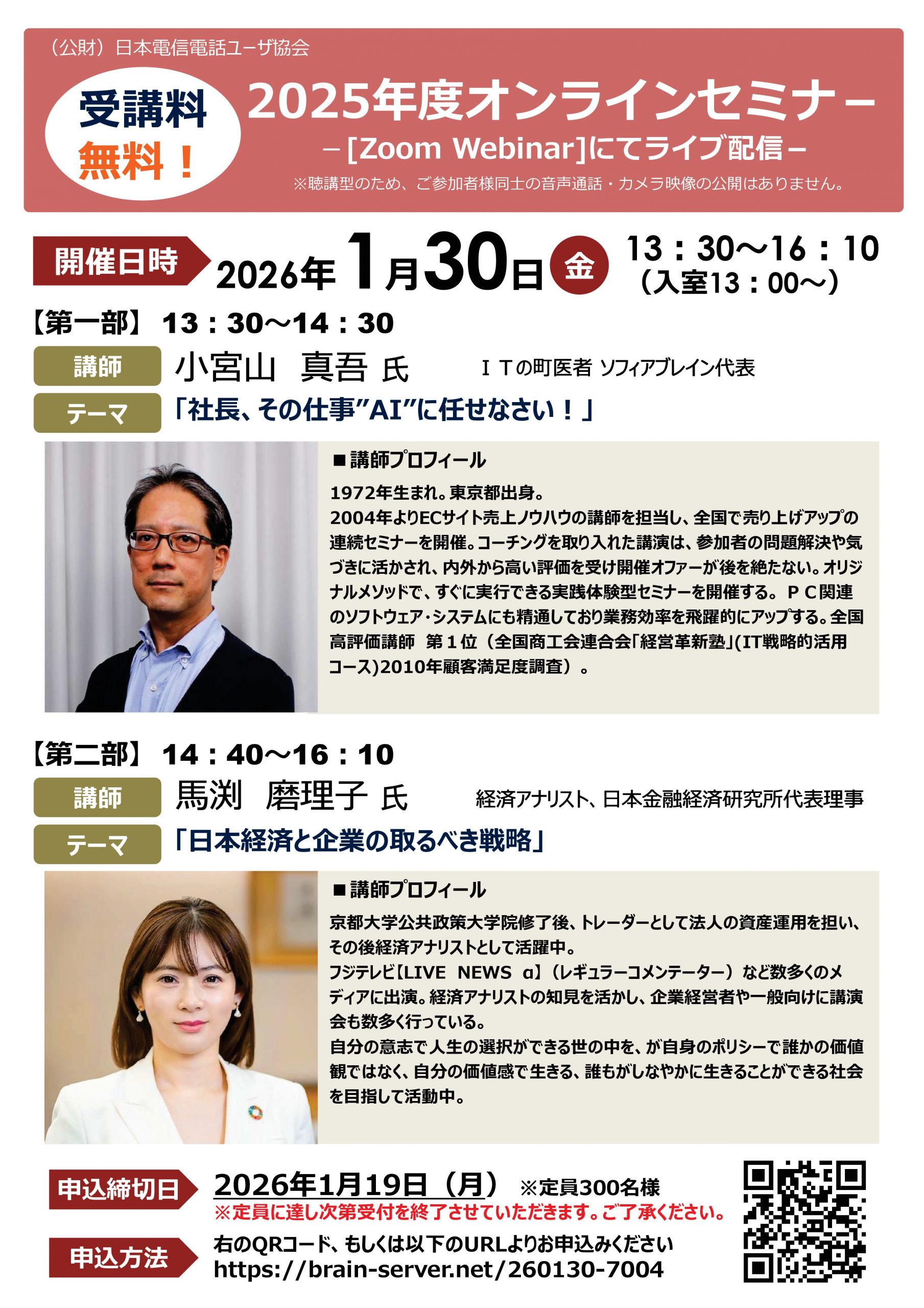 【 日 時 】 2026年1月30日(金) 13:30 ~ 16:10